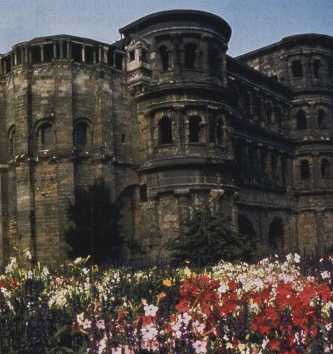 Met Carl for breakfast at 7:30 a.m.  Good Breakfast! Went to the Porta Nigra to catch a tram ride on the Roman Express (two "wagons" hooked together and pulled by an "engine" with seats for about 20 on each wagon, with open sides but with roofs/ceilings.  The narration describing each point of interest we passed was given/recorded in German, French, and English.  The sights included, of course, the Porta Nigra, the 20 centuries old remains of the city gate that had been a part of the city wall in Roman times.  The west tower is still 96 feet tall.  The gate itself was constructed without any mortar but simply layering huge white sandstone blocks, held together by iron clamps (which were removed during the Middle Ages.  Also on the tour we saw the Imperial Baths (a building complex covering 825 by 480 feet) not used after the early fifth century.  Also saw the house which was the birthplace of Karl Marx and also saw the Cathedral to which Empress Helena is said to have brought Christ's robe.  Included in the tour was the House of the 3 Magi, built around 1230 A.D. and is one of the few secular buildings to have survived.  Also visited Jews Alley, where 300 members of the Jewish community lived on about 1.7 acres.