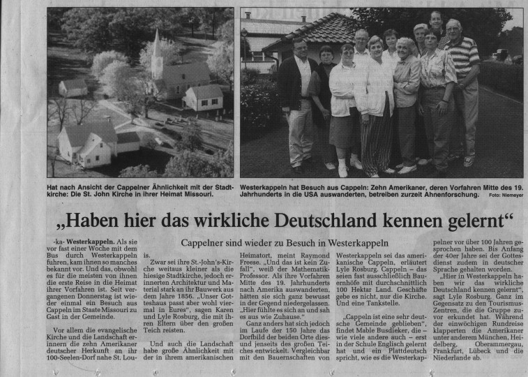 As they drove with the bus through Westerkappeln about a week ago, so much seemed familiar. That, despite the fact that for many of them it was their first trip to the homeland of their forebears. Since last Thursday visitors from Cappeln in the state of Missouri have been guests in our community.